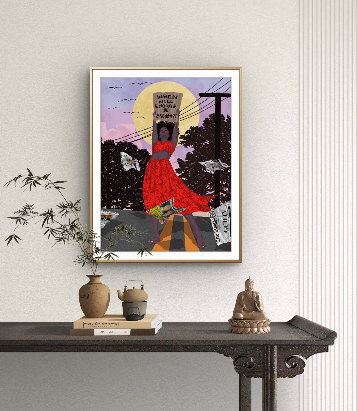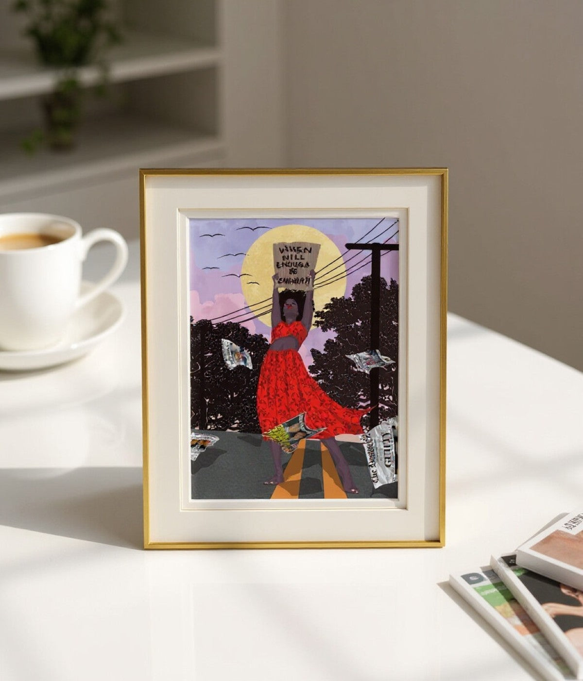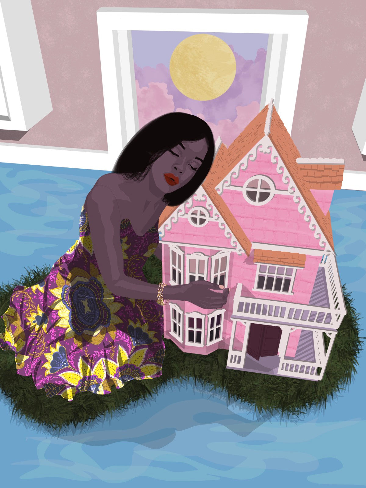 Abi M Knight is an award-winning Nigerian-American artist known for her deeply symbolic, surrealist paintings that explore the emotional complexity of race, identity, and belonging. A self-taught painter with a master’s degree in accounting, Knight left a successful corporate career to pursue art full-time — a leap that now defines her distinctive voice in the contemporary art world.